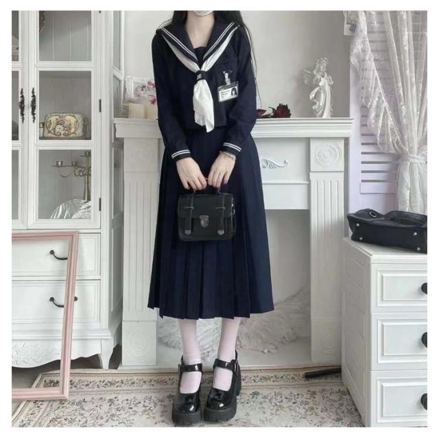 セーラー服 女子高生 制服 コスプレ JK制服 3点セット かわいい 長袖 半袖 シャツ スカート ロング丈 三角タイ スカーフ ロングスカート 上下セット 女子高校生 女子 学生服 高校生 学園祭 文化祭 レディース コスチューム衣装 衣装 仮装 ハロウィン