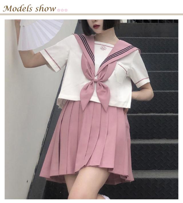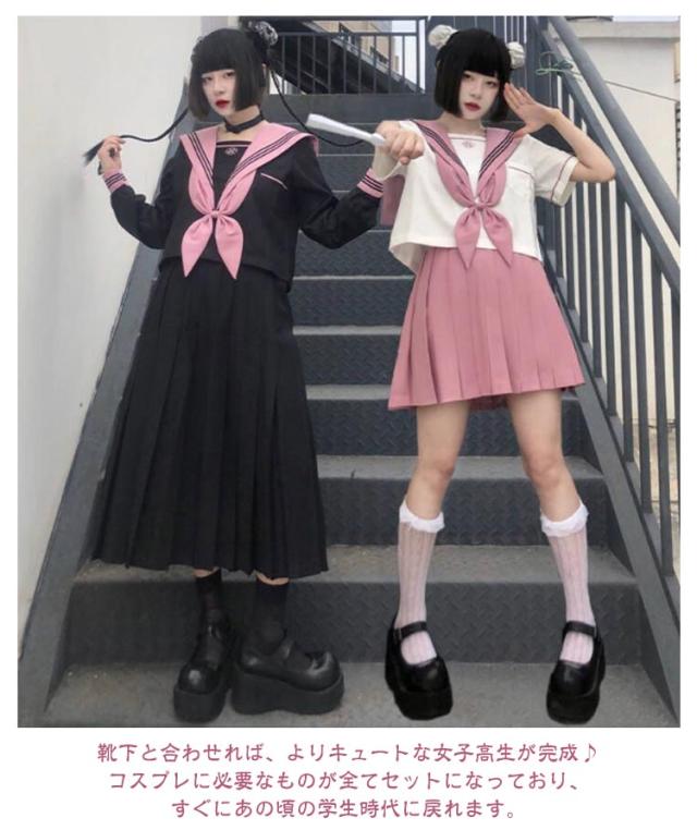 セーラー服 ピンク 女子高生 制服 学生服 コスプレ 3点セット 可愛い 長袖 半袖 シャツ スカート リボン 上下セット ブラック 無地 JK制服 女子高校生 女子 高校生 学園祭 文化祭 レディース コスチューム衣装 衣装 仮装 ハロウィン イベント