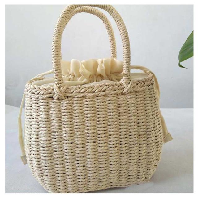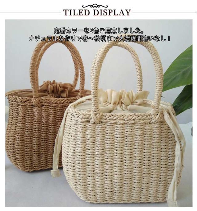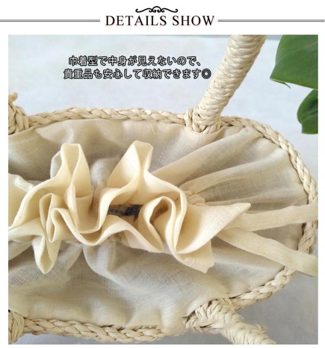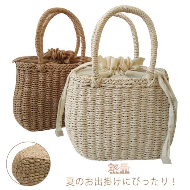 かごバッグ レディース カゴバック ハンドバッグ 軽量 巾着付き レジャーバッグ トートバッグ ストローバッグ 手提げ お花見 夏バッグ 浴衣 春 夏