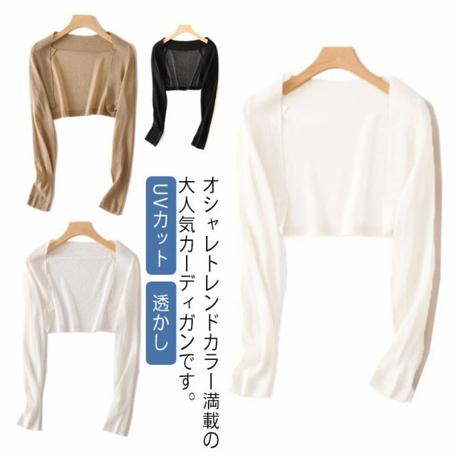 カーディガン レディース サマーカーディガン 透かし ボレロ風 長袖 ショート丈 uvカット 日焼け防止 薄手 透かし編み 無地 羽織 冷房対策 カジュアル シンプル キレイめ お洒落 春夏 トップス アウター 学生 通勤 オフィス 20代 30代 40代 送料無料