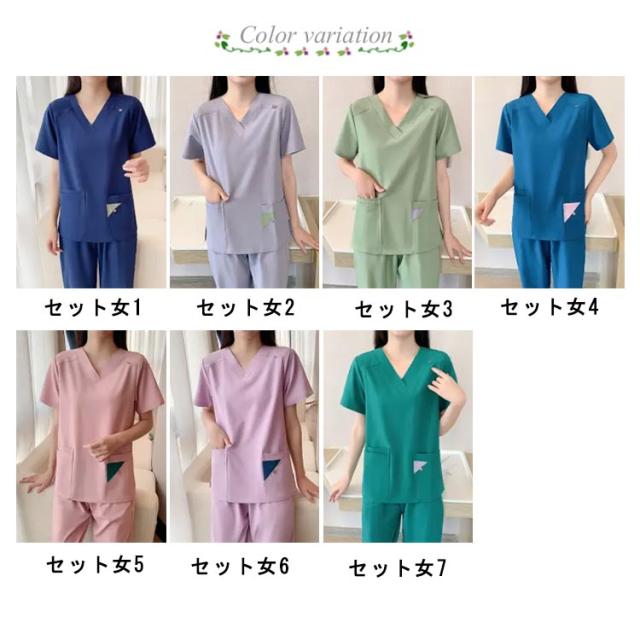 エステ ユニフォーム 大きいサイズ 制服 セットアップ 2点セット サロン レディース おしゃれ 半袖 パンツ エステユニフォーム Vネック 抗菌 静電気防止 速乾 ストレッチ 美容 歯科衛生士 制服 作業服 ネイビー グレー S M L XL 2XL 3XL