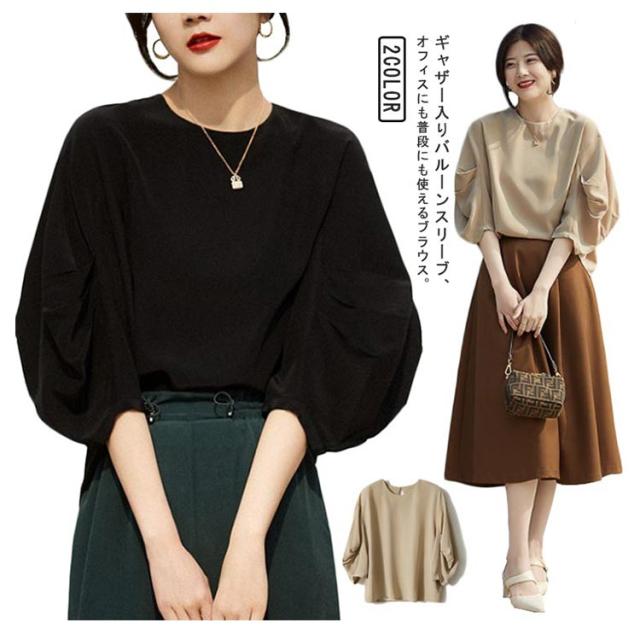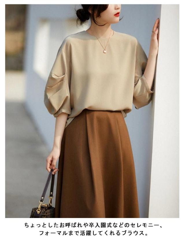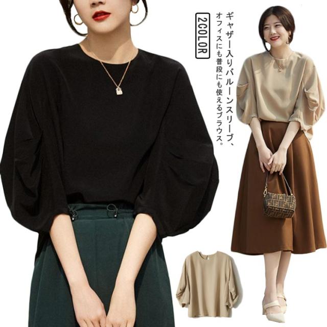 バルーン袖 ブラウス レディース シャツ 半袖シャツ シャツブラウス 春 夏 スーツ トップス フォーマル ボリューム袖 ギャザー入り 通勤 OL 結婚式 二次会 入学式 卒業式 卒園式 入園式 エレガント M L XL 2XL 3XL