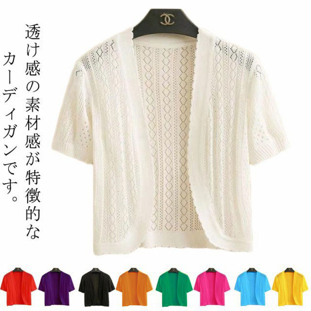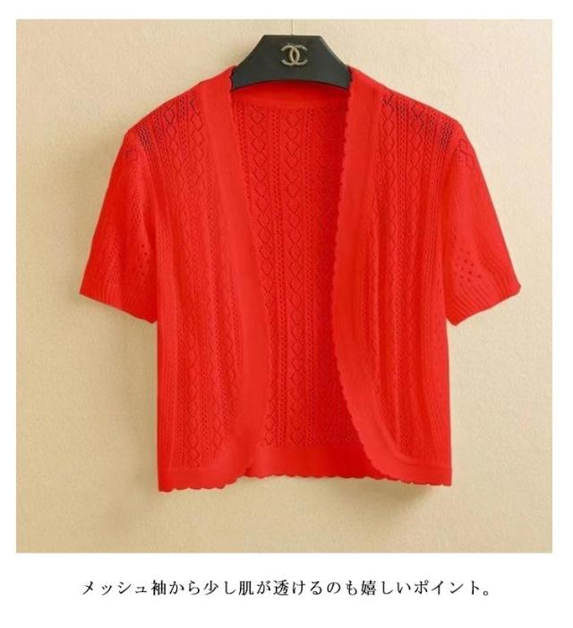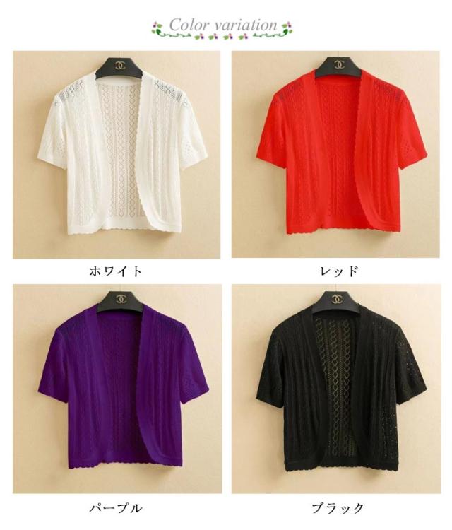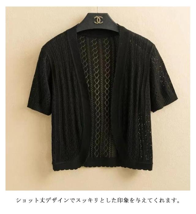 ボレロ 半袖 カーディガン レディース ニット トップス ニットトップス ニットカーディガン 半袖 サマーニット 透かし編み ボレロ ジャケット 夏 夏用 アウター 肩掛け 羽織 シンプル フェミニン カジュアル フォーマル 大きいサイズ 送料無料