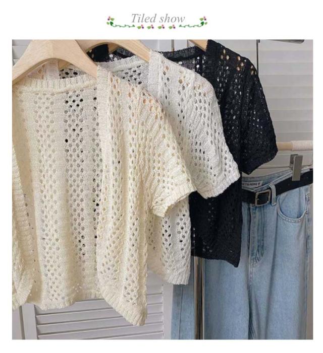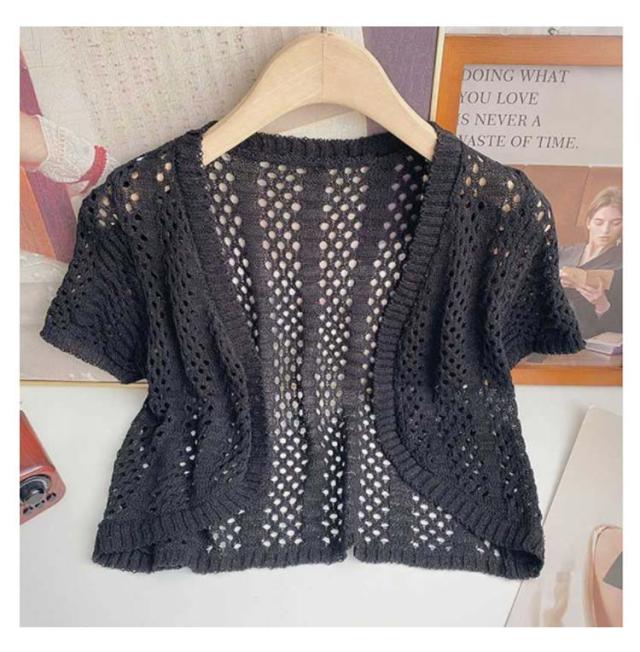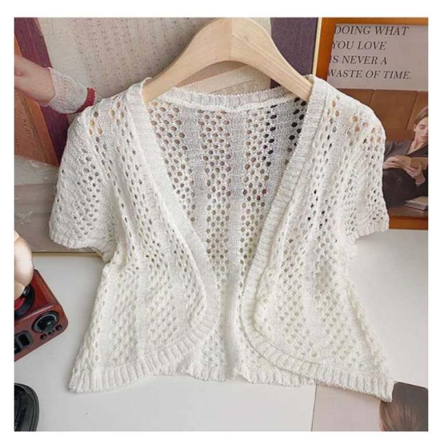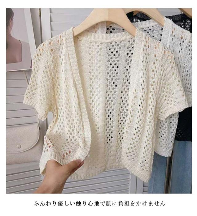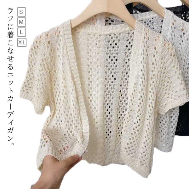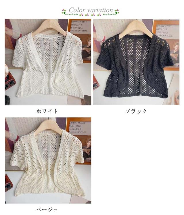 サマーカーディガン レディース サマーニット 透かし編み カットワーク ボレロ 羽織り サマーニット カーディガン 半袖カーディガン ニットカーディガン 透け ニット 春夏 薄手 Vネック 透け 羽織 薄手 軽量 トップス アウター 夏服 春夏秋 きれいめ おしゃれ 送料無料