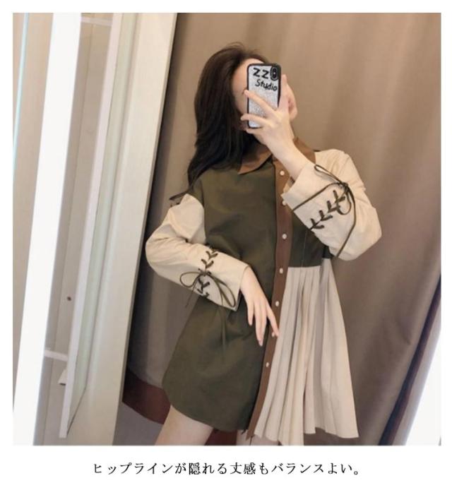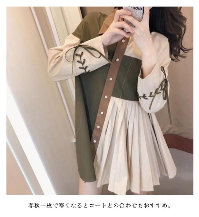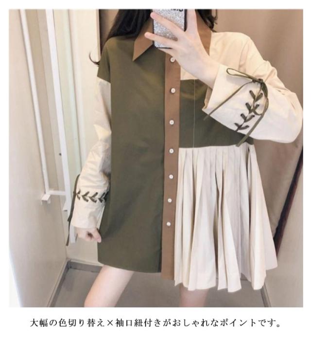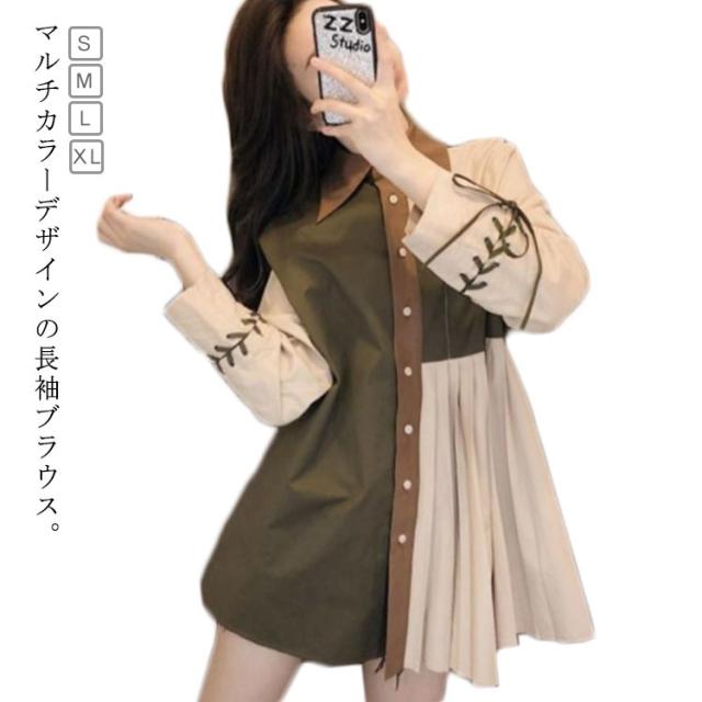 切り替え トップス トレンド シャツ レディース サイドプリーツ 長袖 秋服 おしゃれ 大人 女性 送料無料