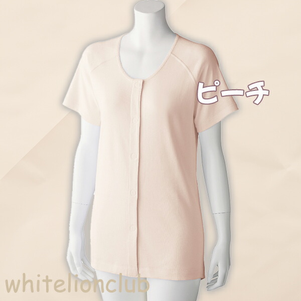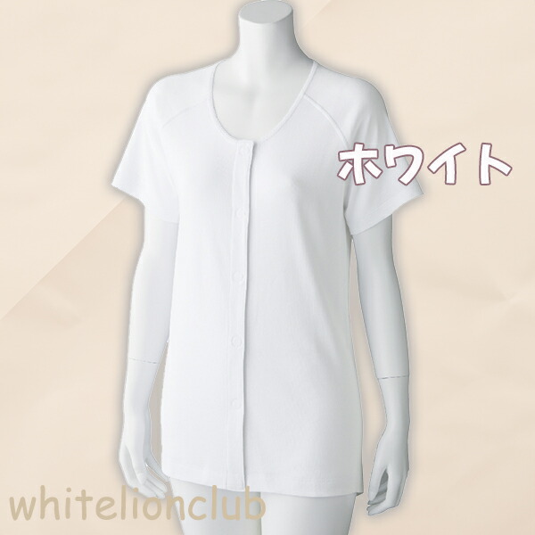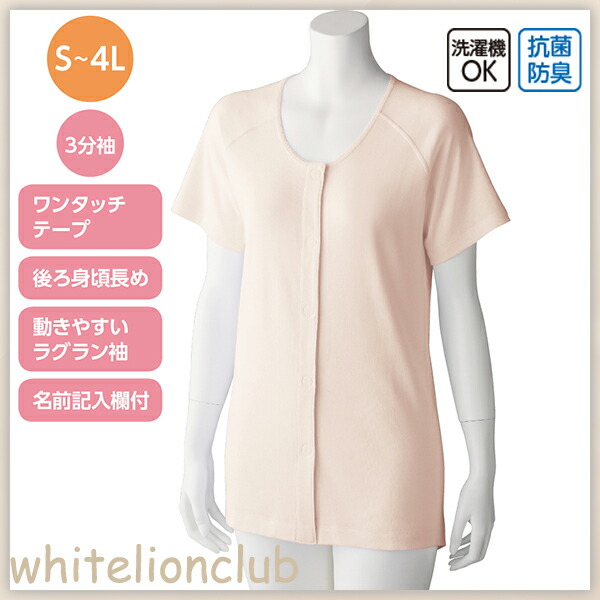 3分袖 ワンタッチシャツ 2枚組 抗菌 防臭 綿100% ラグラン袖 前開き S/M/L/LL | 婦人用 ワンタッチテープ式 インナー 肌着 シャツ 半袖 三分袖 名前ラベル付き
