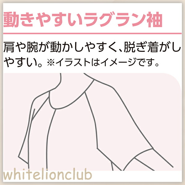 肩や腕が動かしやすく、脱ぎ着がしやすいラグラン袖。