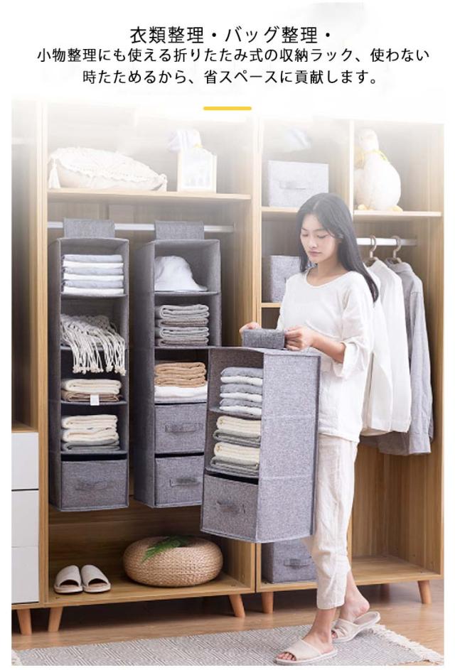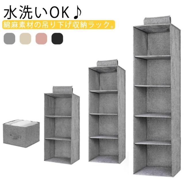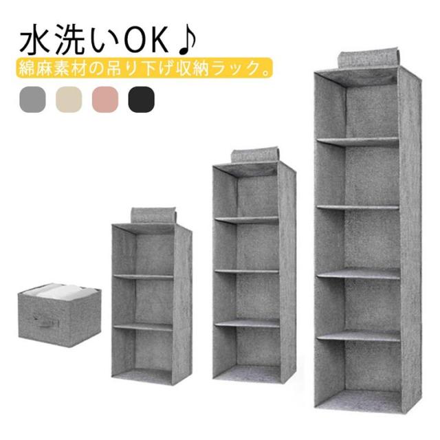 洗える 吊り下げ式衣類収納袋 クローゼット 収納 吊り下げ収納 吊り下げ ラック 3段/4段/5段 吊るす 掛ける フック 吊り下げラック ハンガーラック 引き出し追加可能 帽子 ハンガー 下着 綿麻 バッグ収納ハンガー 収納ホルダー カバン収納袋 多層収納