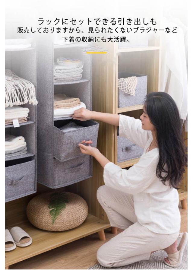 | 水洗いOK♪綿麻素材の吊り下げ収納ラック。 立体的なデザインで、垂直空間を利用して、多層収納できるから、スペースの節約に。 荷重力が強く、変形しにくい良い材質で、衣類などたっぷり収納しても型崩れしない、耐摩耗性もあります! ボックス(型)のスリムな吊り下げラックは、キャップ・ハットなどの帽子やバッグ、アクセサリーなどのファッション小物を仕舞うのにもオススメです。棚で仕切られてる収納ボックスだからサッと入れるだけですっきり片付きます。 衣類整理・バッグ整理・小物整理にも使える折りたたみ式の収納ラック、使わない時たためるから、省スペースに貢献します。 ラックにセットできる引き出しも販売しておりますから、見られたくないブラジャーなど下着の収納にも大活躍。 | |