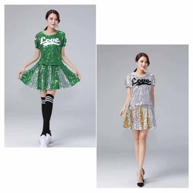 送料無料 スパンコール チアリーダー衣装 ダンス衣装 チアガール 衣装 ユニフォーム チア 制服 コスチューム チア制服 サッカー バスケ ハロウィン イベント S M L XL 2XL 3XL 4XL