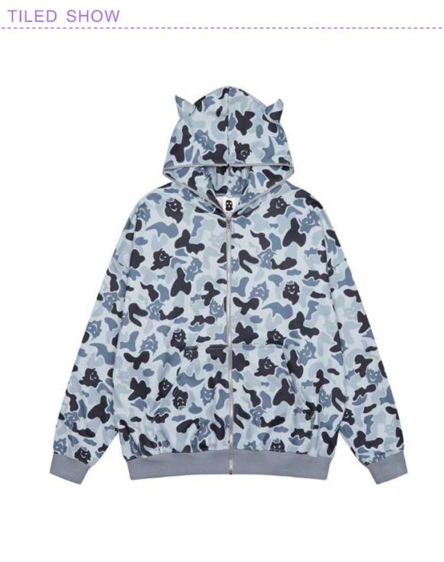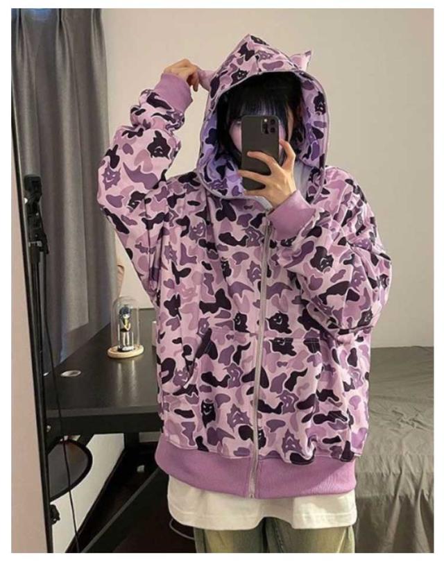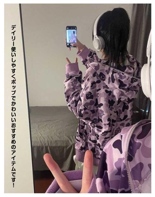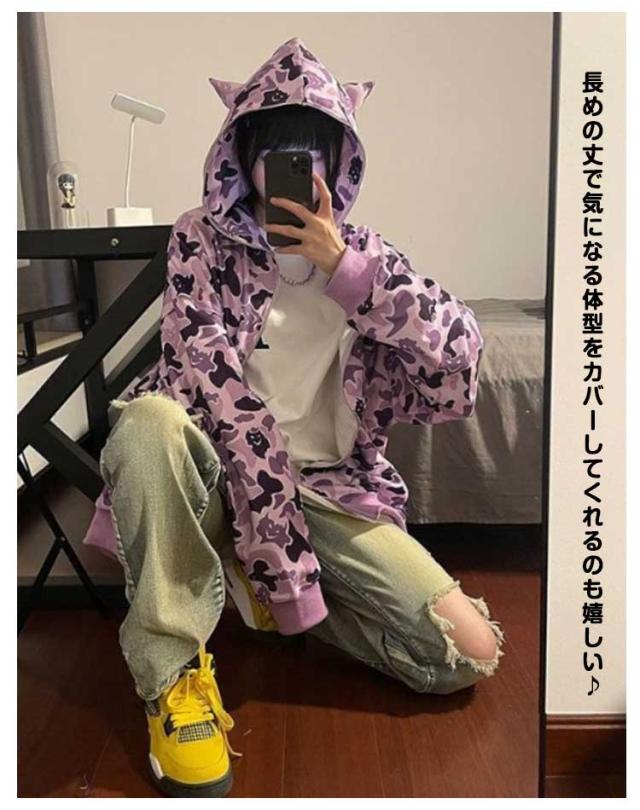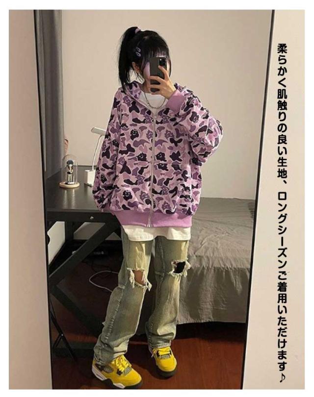 フード付き パーカー レディース 長袖 トップス 牛柄 迷彩柄 悪魔 スウェット トレーナー ゆったり アウター ジップアップパーカー 大きいサイズ 体型カバー ガールズ ファッション 春 秋 個性的 原宿系 ヒップホップ ダンス カジュアル 通学 通勤 2色 送料無料