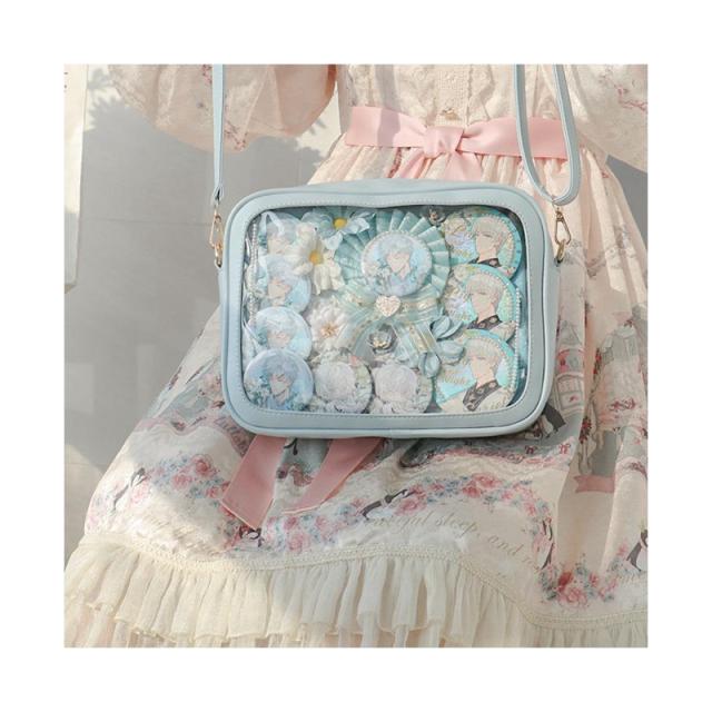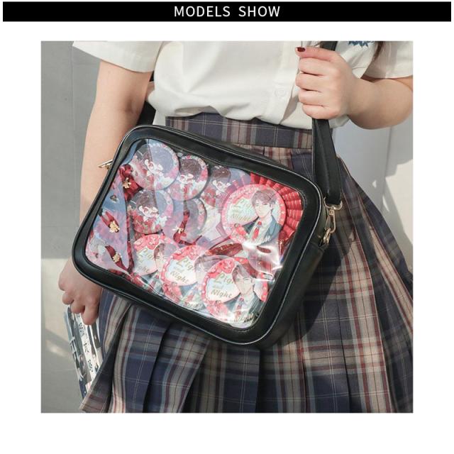 送料無料 痛バッグ ショルダーバッグ クリアバッグ ビニール ポケット ビニール 軽量 痛バ ガールズ 子供 学生鞄 学生バッグ 学生かばん