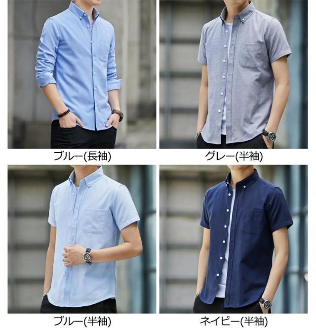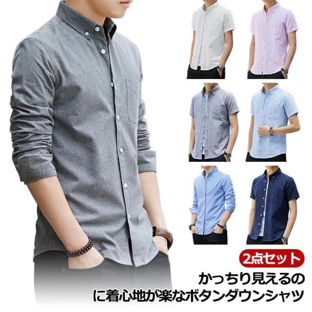 シャツ メンズ ボタンダウン シャツ 2点セット 長袖 半袖 スリム フィット 細身 カジュアルシャツ ワイシャツ 白シャツ Yシャツ 襟高 無地 春 秋 秋物 秋服 ビジネス カジュアル トップス 長袖シャツ 紳士用 しわになりにくい