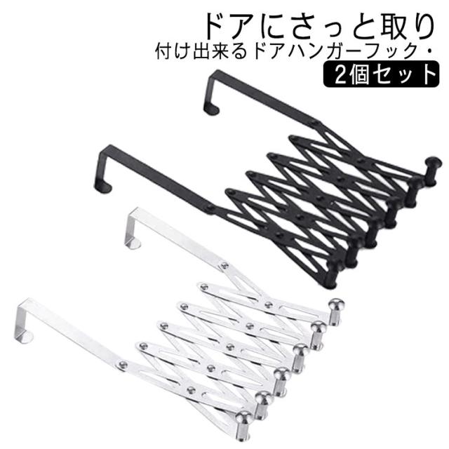 ドアハンガー ドアハンガーフック 伸縮 2個セット ドアフック ハンガーフック ハンガーラック 小物掛け コート ジャケット 帽子 洋服 伸縮ハンガー 省スペース 穴あけ不要