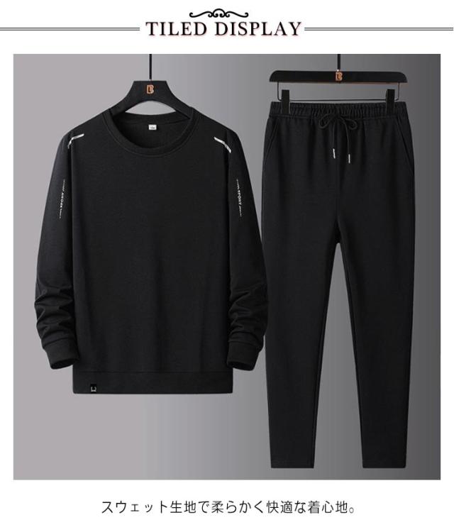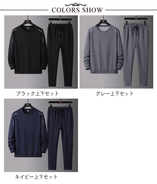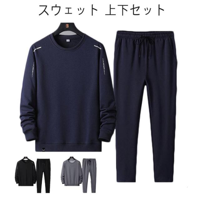 スウェット 上下セット ジャージ メンズ シニア 紳士 大きいサイズ 長袖 長ズボン トレーナー クルーネック ストレッチ スポーツ リビングウエア ルームウェア 部屋着 春 秋 トレーニング ジム ゴルフ