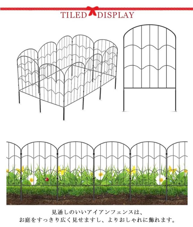 アイアンフェンス 35*60cm 10枚セット 花壇 フェンス 鉄 土留め ガーデンフェンス スチールフェンス ガーデンエッジ 連杭 ジョイント式 ブラック ガーデニング 屋外 柵 庭 アイアン フェンス 家庭菜園 園芸 仕切り 囲い おしゃれ
