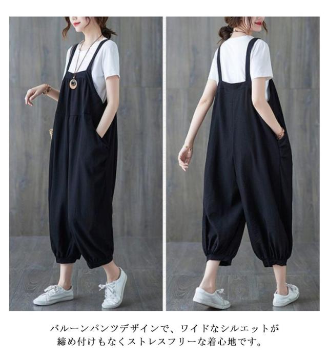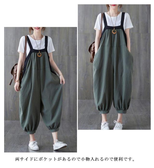 サルエル パンツ レディース オールインワン サルエルパンツ バルーンパンツ ロングパンツ 大きいサイズ ポケット付き オーバーオール 着痩せ ゆったり 薄手 お洒落 春夏秋 体型カバー カジュアル