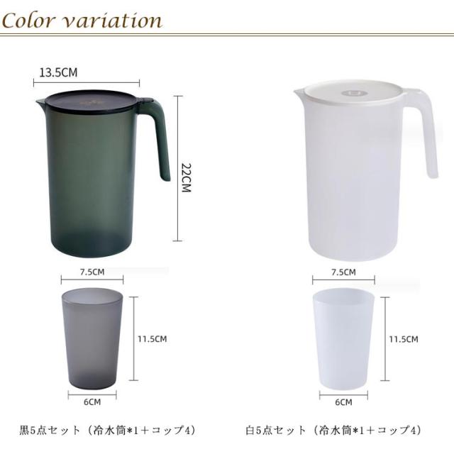 | 色 | 黒5点セット(冷水筒*1+コップ4) 白5点セット(冷水筒*1+コップ4) |