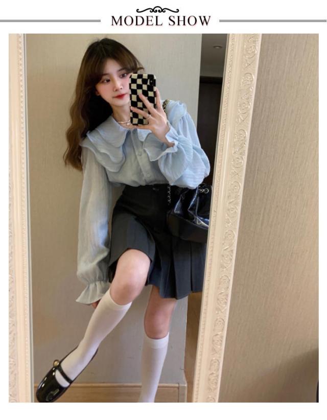 ブラウス フリルブラウス シャツ レディース ボリュームスリーブ シアー トップス 前開き ボタン 春 秋 カジュアル ボリューム袖 上品 きれいめ