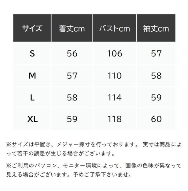| サイズについての説明 | 【サイズ】画像を参照お願い致します。 ※上記サイズは平置き実寸になります。 サイズ表の実寸法は商品によって1-3cm程度の誤差がある場合がございます。 |