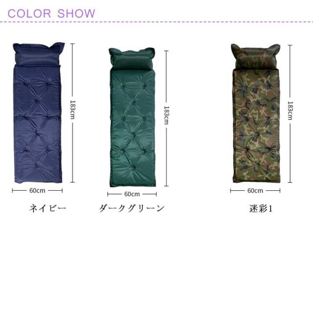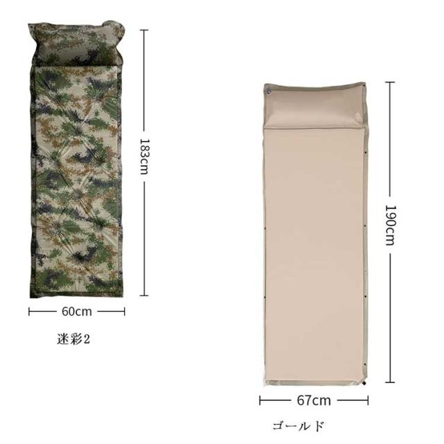 | アウトドアや車中泊に便利なキャンプマット。 厚さ2.5cmもあるため快適に過ごすことができます。 テント泊をする時の湿気や暑気をカットできます。 連結可能なので二人や家族でゆったり過ごせます。 頭部を高反発フォームで支え、しっかりフィット。個人習慣によってエアーピローの膨張程度を調整でき、均一的にストレスを分散し、体とぴったり合うので、血管、神経に圧迫されなく、頚椎の疲労を解消して快適に眠りに付けます。 バルブを開けるだけで空気が入り自動でに膨らみます。 収納バッグ付きで持ち運びもラクラク♪ 防水コーティング加工で水洗い可能! 汚れてもサッと拭き取りお手入れはらくらく! 釣り、車中泊、山登り、バーベキュー、公園、坪、キャンプ、砂浜などのさまざまなアウトドアシーンで使えます。 | |