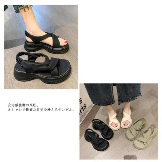 | カジュアルすぎない、ちょっぴりフェミニンなサンダル。 クロスしたアッパーデザイン、バックストラップはゴムになって、さっと履き脱ぎラクラク♪ 足に心地よくフィットするフラットソールで脚への負担を軽減。 低反発ソールに柔らかいストラップ、長時間履いていも疲れにくく、痛くないスポーツサンダル。 安定感抜群の厚底、オシャレで快適な足元を叶えるサンダル。 シンプルなデザインに加え、なカラー展開で、様々なスタイルに合わせることができます。 | |