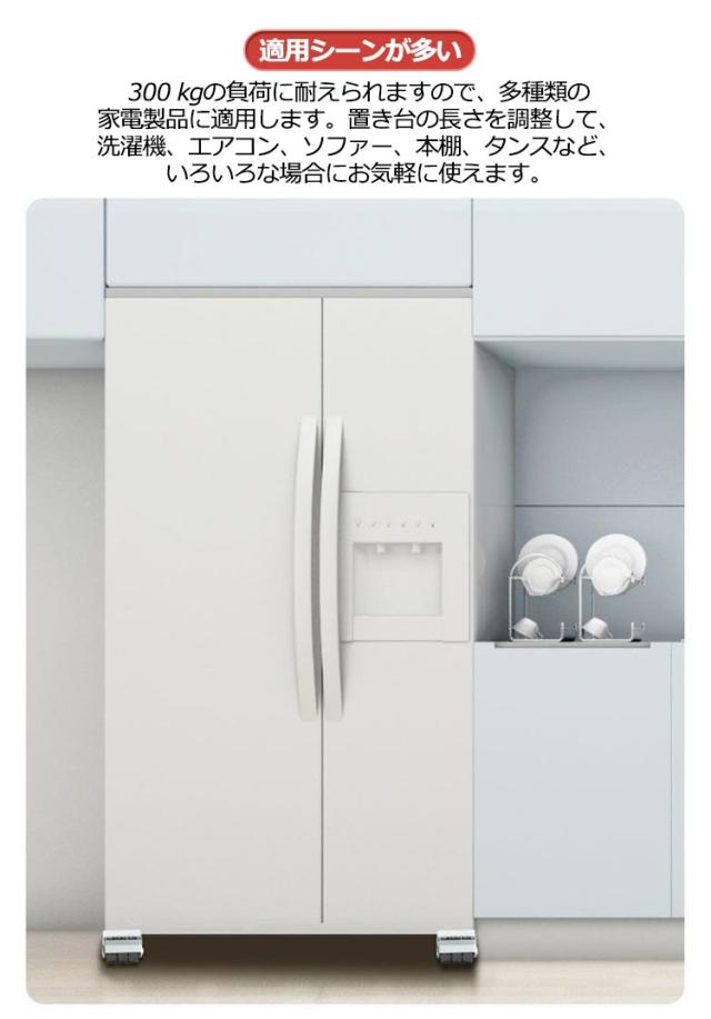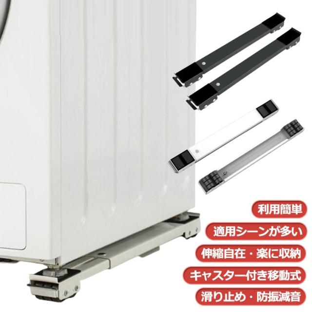2個セット 洗濯機 冷蔵庫 キャスター 移動 置き台 キャスター台 かさ上げ台 伸縮式 調節可能 洗濯機 台 洗濯機スライド台 滑り止めマット ランドリーラック ドラム式洗濯機 ラック 引っ越し 大型家具 家電 運搬用 ローラーキャリー 家具 移動 便利