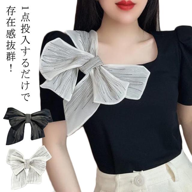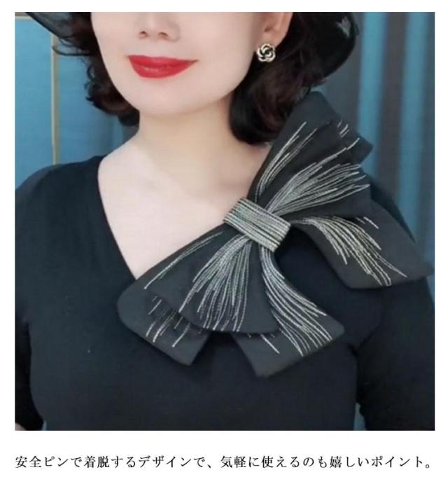 | 1点投入するだけで存在感抜群! シンプルなTシャツやワンピースに加えるだけでグッとトレンド映えする便利アクセサリー。 オフホワイトとブラックの2点セットで、コーデしやすい◎ 安全ピンで着脱するデザインで、気軽に使えるのも嬉しいポイント。 普段使いはもちろん、結婚式、卒業式、七五三、卒園式、入園式、発表会などフォーマルにも使えるアイテムです。 | |