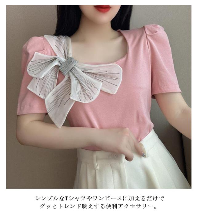 【2個セット】 大きめリボンブローチ ブローチ 刺繍 飾り 安全ピン 可愛い リボン 大人 キッズ 大きいサイズ リボン ブローチ フェミニン アクセサリー 子供 発表会 卒業式 入学式 成人式
