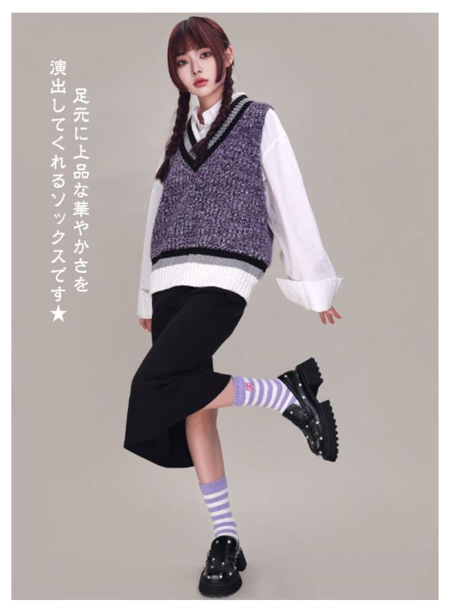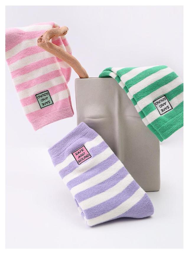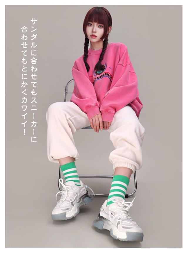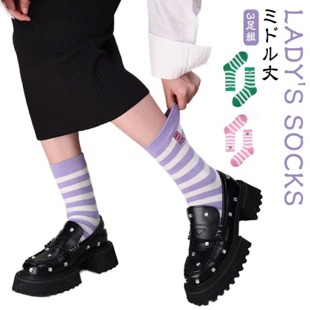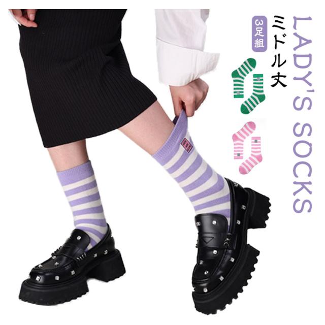 ボーダー柄 靴下 ミドル丈 3足セット レディース ビタミンカラー 靴下 北欧 ソックス おしゃれ ソックス スニーカーソックス クルー丈 クルーソックス くつした ポップ ソックス 夏用 靴下 ソックス 秋用 女性用 レディース靴下 送料無料