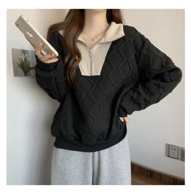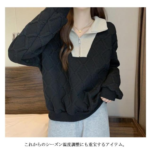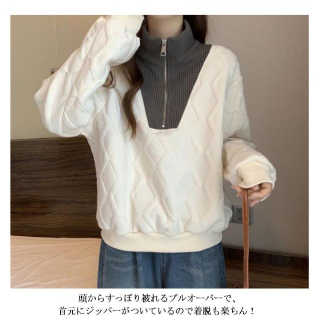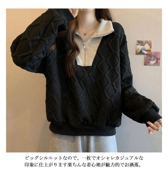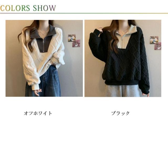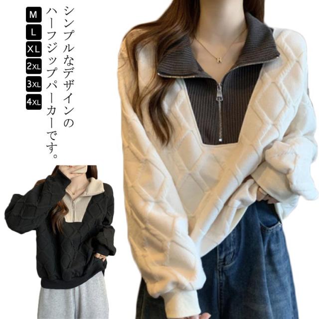 ハーフジッパー トレーナー レディース 長袖 トップス スウェット 送料無料 パーカー プルオーバー 大きいサイズ ゆったり 春 秋 冬 ショート丈 カットソー おしゃれ 個性 カジュアル