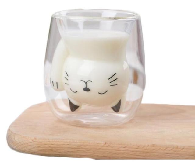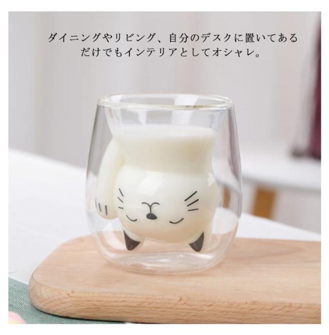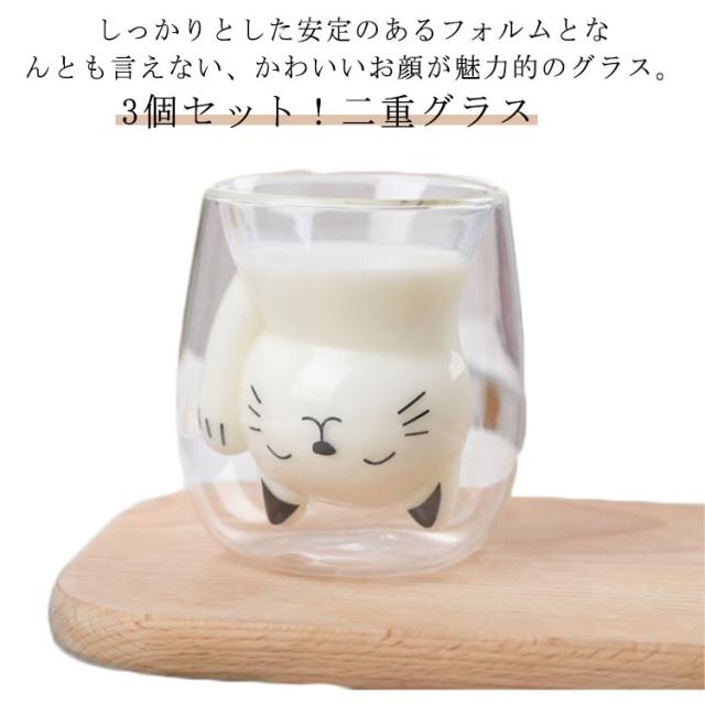 3個セット!ダブルウォールグラス かわいい カップ 250ML ねこコップ グラス 二重グラス マグカップ アニマル ガラスカップ 耐熱ガラス コーヒーカップ ティーカップ ミルクカップ オフィス 真空断熱 動物 猫 ネコ おしゃれ