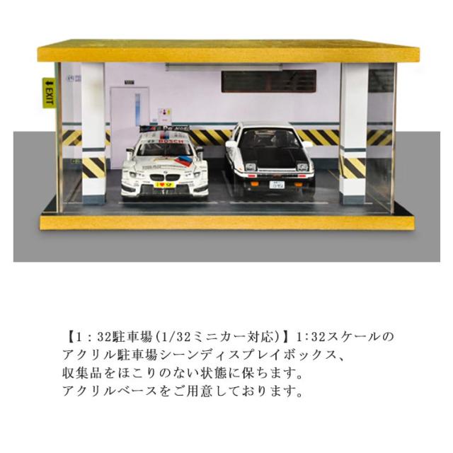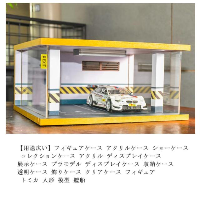 ディスプレイケース 1/32駐車場 アクリルケース LEDライト付き コレクションケース 1:32駐車場陳列ケース 収納ケース ミニカー ケース 展示台 アクリルボックス クリア 透明 防塵キューブ 展示ケース フィギアケース 木製 243×215×120mm