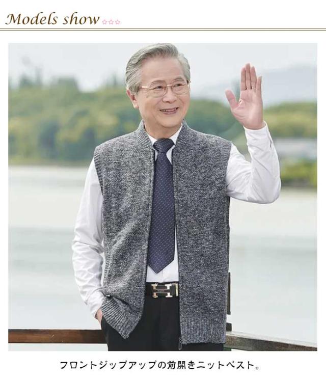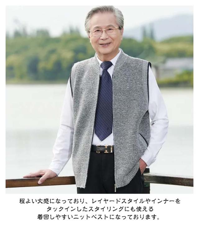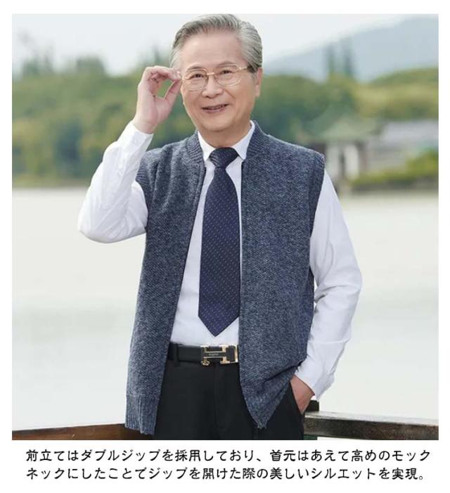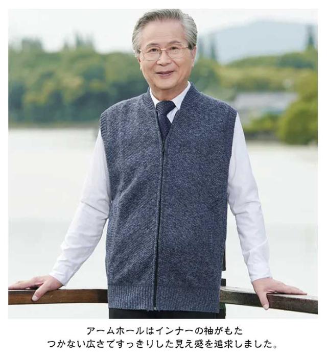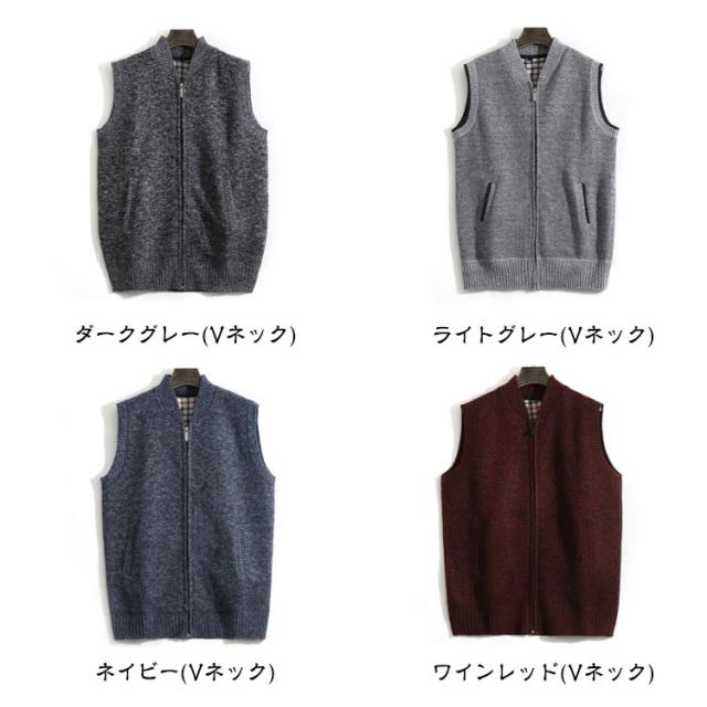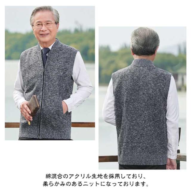 ニットベスト 杢カラー メンズ ベスト ニット 前開き ジップアップ Vネック ハイネック シニア お年寄り 高齢者 秋 冬 防寒 保温 暖かい ニット トップス 50代 60代 70代 男性 父 祖父 敬老の日 プレゼント 実用的 大人 カジュアル 【送料無料】