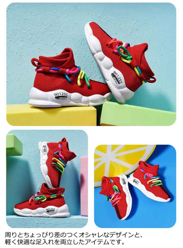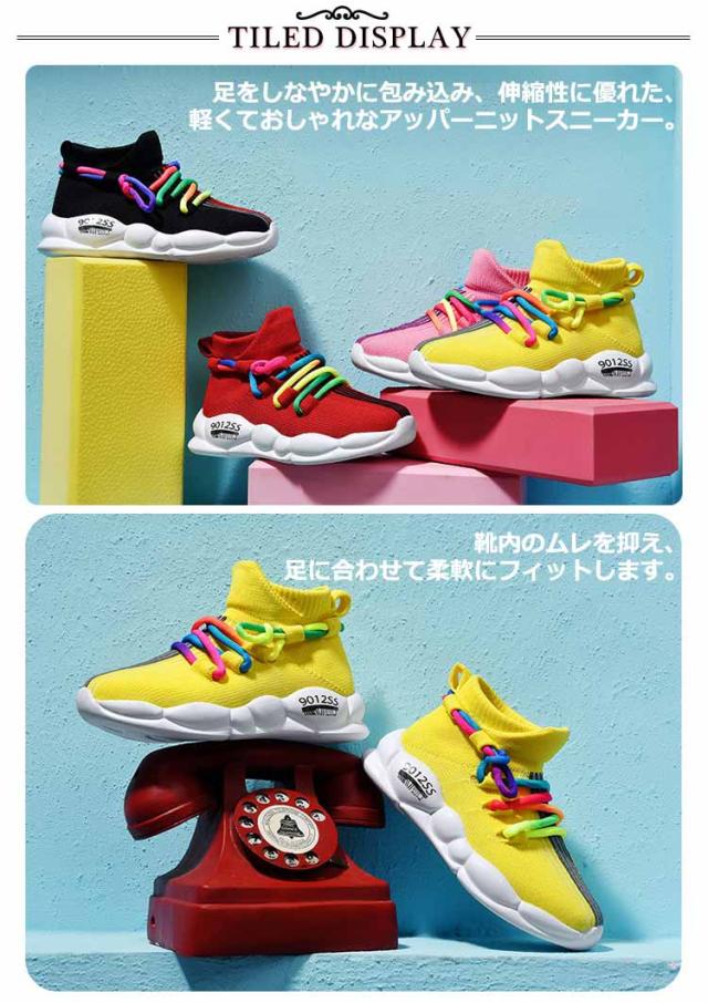 キッズ スニーカー フライニット ソックススニーカー メッシュ スリッポン 厚底 ランニングシューズ 運動靴 軽量 ローカット 女の子 男の子 通園 通学靴 クッション性 屈曲性 疲れにくい 子供靴 ジュニア