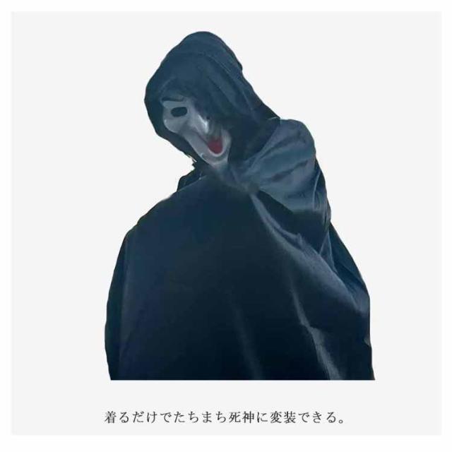 送料無料 死神 コスプレ マント フード付き マスク 2点セット 子供用 コスチューム ハロウィン 仮装 死神コス お面 小道具 お化け屋敷 変装用 イベント 学園祭 文化祭 パーティー用