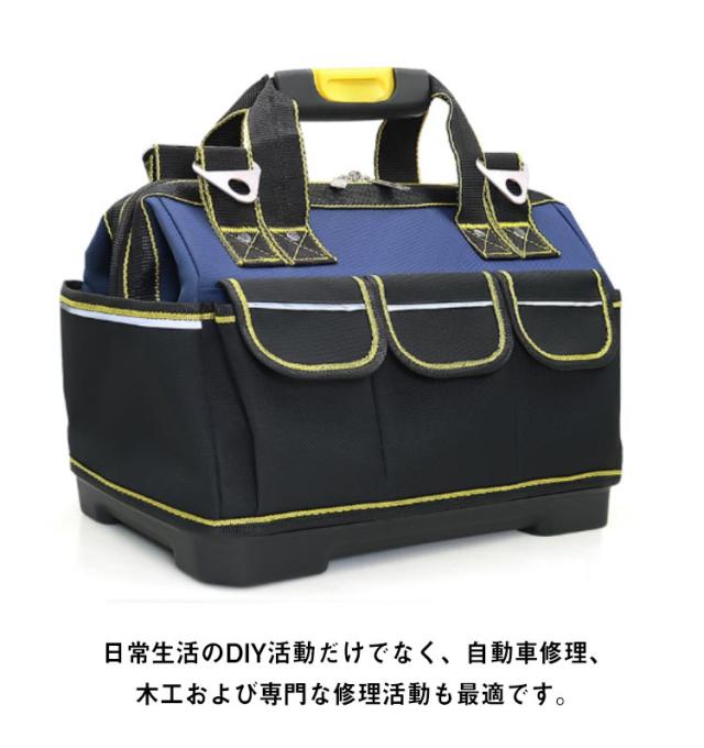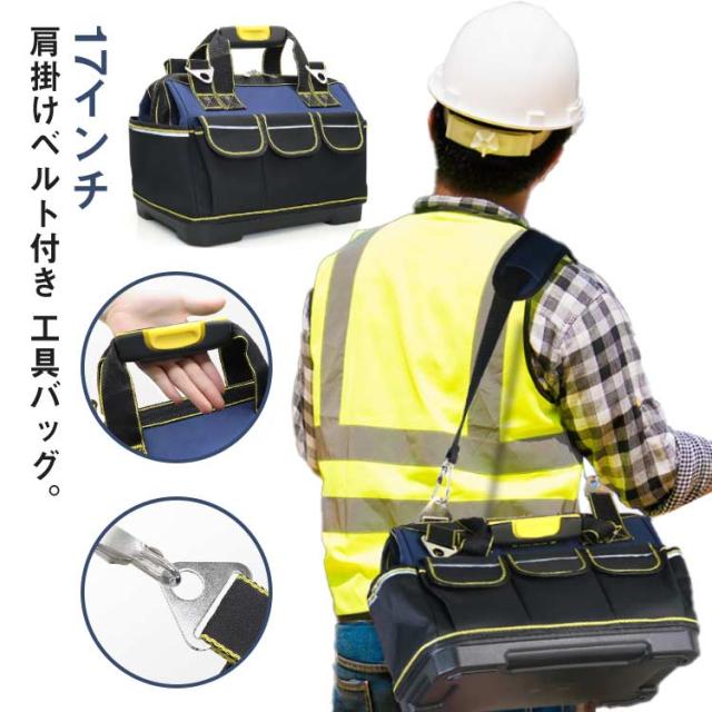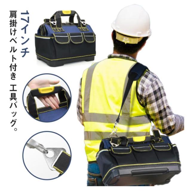 工具バッグ ツールバッグ 工具袋 道具袋 大口収納 大容量 工具 大工道具 オックスフォード 工具箱 バイク ショルダー修理 キャリーバッグ ショルダーバッグ 強化底 撥水 肩掛けベルト付き 手提げ DIY/バイク整備/電工/大工/園芸工具収納 17インチ