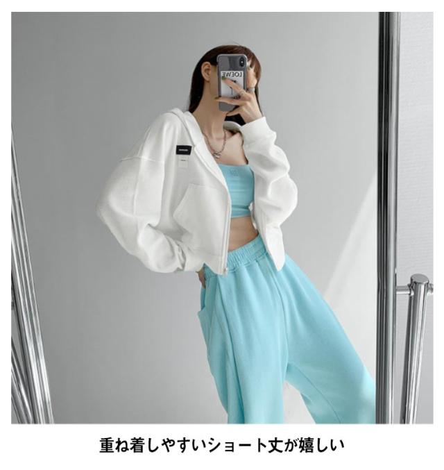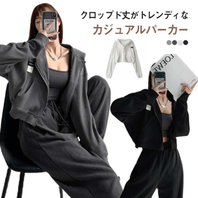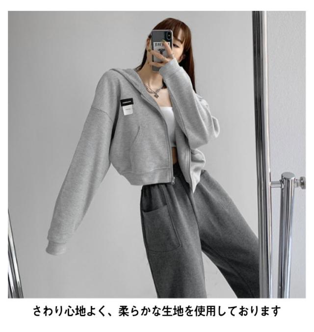 パーカー レディース ショート丈 ジップアップパーカー 薄手 長袖 オーバーサイズ ジップアップ ショートパーカー ゆったり トップス 前開き UVカット 紫外線対策 UV 春 夏 秋 おしゃれ かわいい ゆったり カジュアル 長袖 韓国 大人可愛い