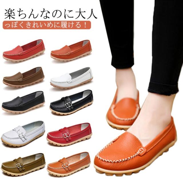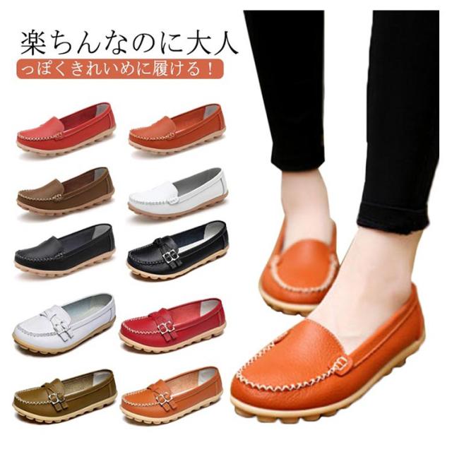 ローファー 革靴 レディース 2タイプ パンプス スリッポン モカシン 二層牛革 痛くない リラックスシューズ 女子 カジュアル 軽量 通勤用 走れる 楽ちん シンプル オフィス