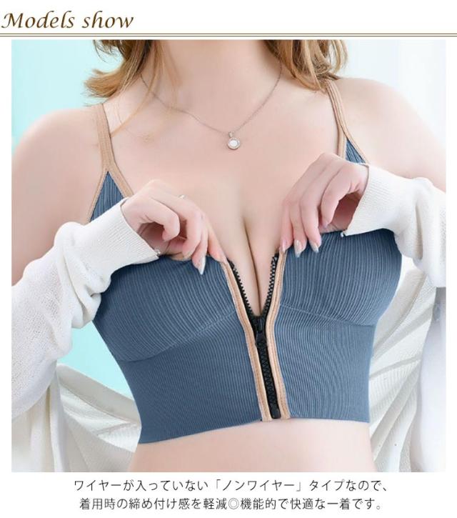 前開き スポーツブラ 2枚セット ブラジャー 送料無料 ノンワイヤー フロントファスナー ブラトップ カップ付き インナー トップス 落ちない バストアップ 脇肉 授乳 見せブラ キャミ ルームウェア 下着 肌着 レディース 女性 スポーツウェア ヨガウェア ジム 送料無料