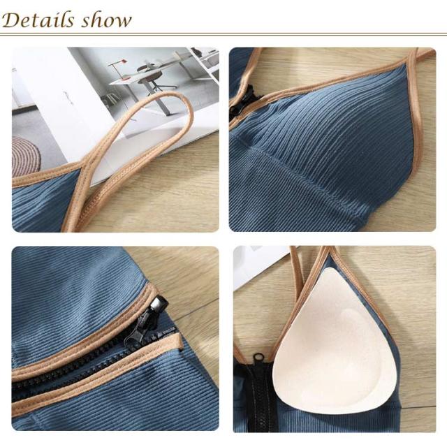 | 前開きで簡単◎着脱しやすいチャックのブラジャー2枚セット。 ワイヤーが入っていない「ノンワイヤー」タイプなので、着用時の締め付け感を軽減◎機能的で快適な一着です。 伸縮性に優れた弾力感のある細リブ素材で、フィット感がある着心地◎ インナーとしてはもちろんジムウェアとしてもおすすめ、様々なコーデに活躍するアイテムです。 | |