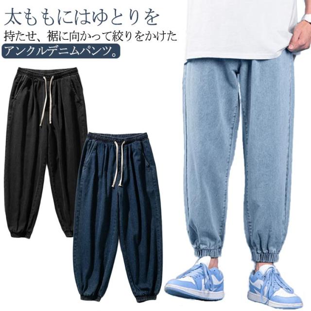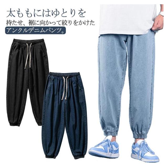 デニム ワイドパンツ メンズ ジーンズ ジーパン イージーパンツ テーパードパンツ バルーンパンツ ジョガーパンツ メンズ スウェットパンツ デニムパンツ 送料無料 テーパード デニム スリム オーバー ゆったり ストレッチ