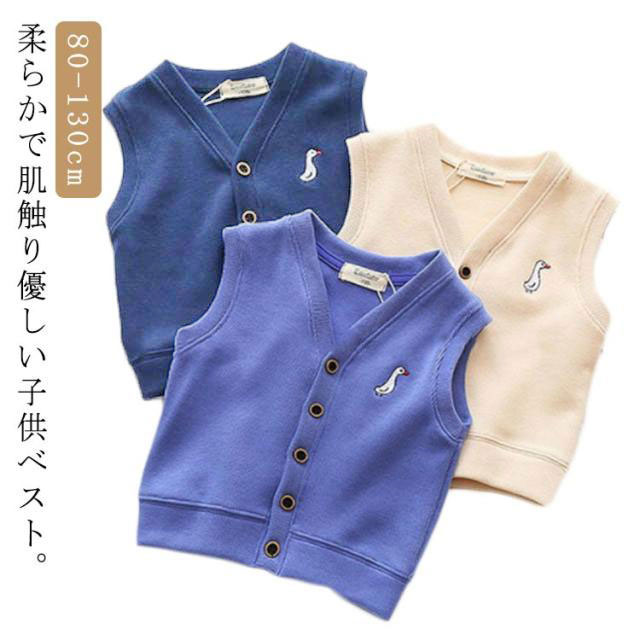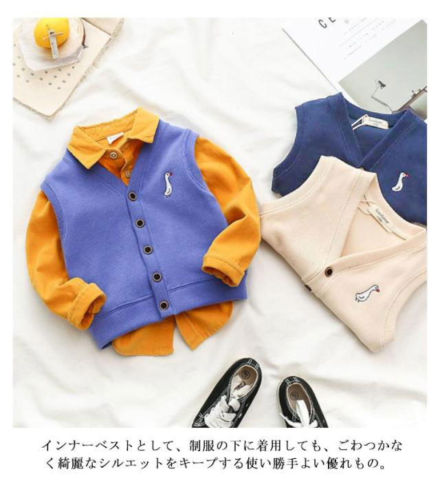 | 柔らかで肌触り優しい子供ベスト。 シンプルなデザインなので、男女問わず、可愛く着こなせる。 厚すぎず薄すぎない程よい厚みで、季節変わり目の体温調節にぴったり。 インナーベストとして、制服の下に着用しても、ごわつかなく綺麗なシルエットをキープする使い勝手よい優れもの。 シーズンを問わず、1年中使えるから重宝します。 | |