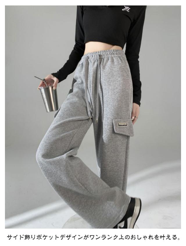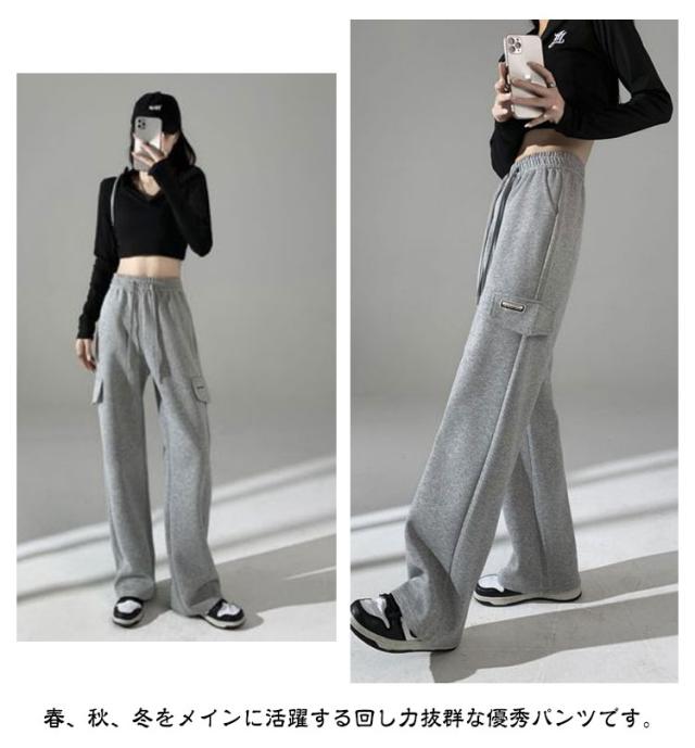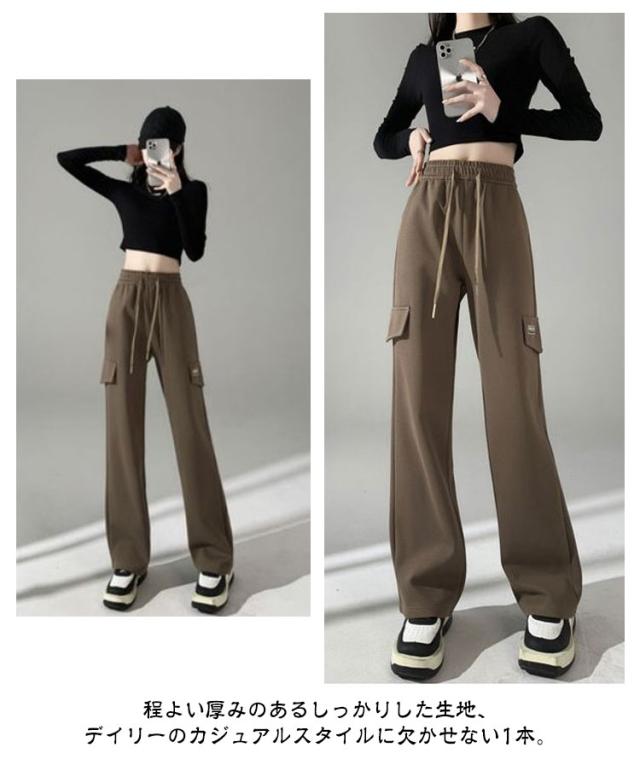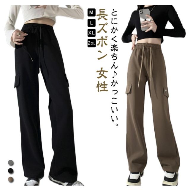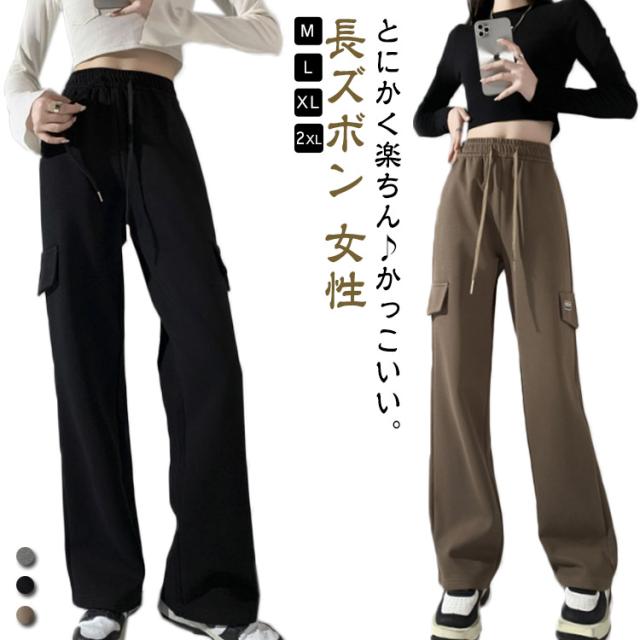 スウェットパンツ カーゴパンツ リラックスパンツ ストレートパンツ レディース ウェストゴム ロングパンツ ワイド ハイウェスト ワークパンツ 楽チン イージーパンツ ジャージパンツ