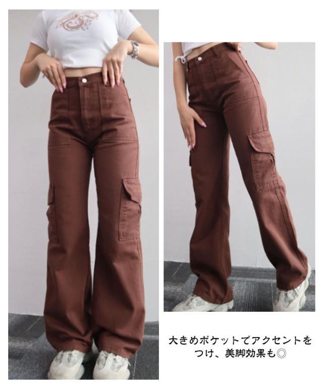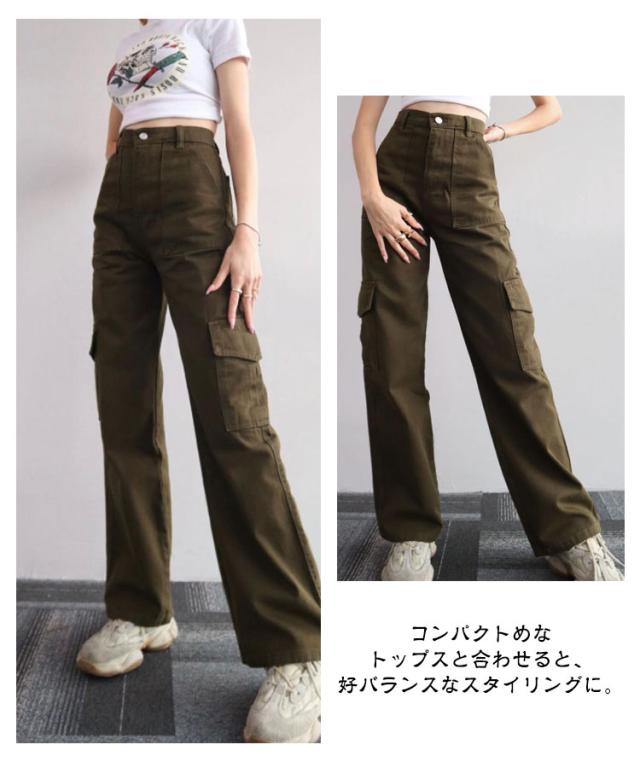 カーゴパンツ レディース くすみカラー ワークパンツ カーゴ ロングパンツ 長ズボン ミリタリーパンツ カジュアル ストリート おしゃれ ワイド 春秋 ボトム アメカジ