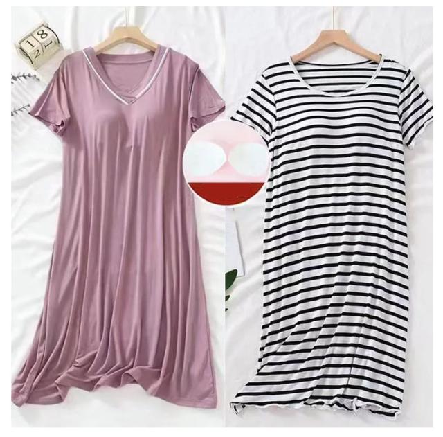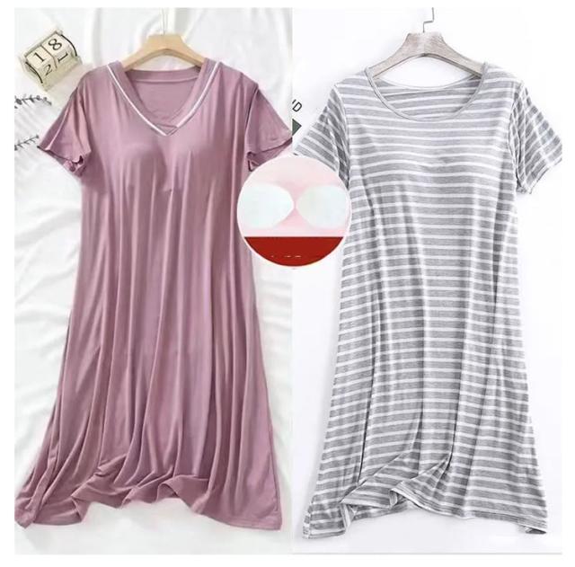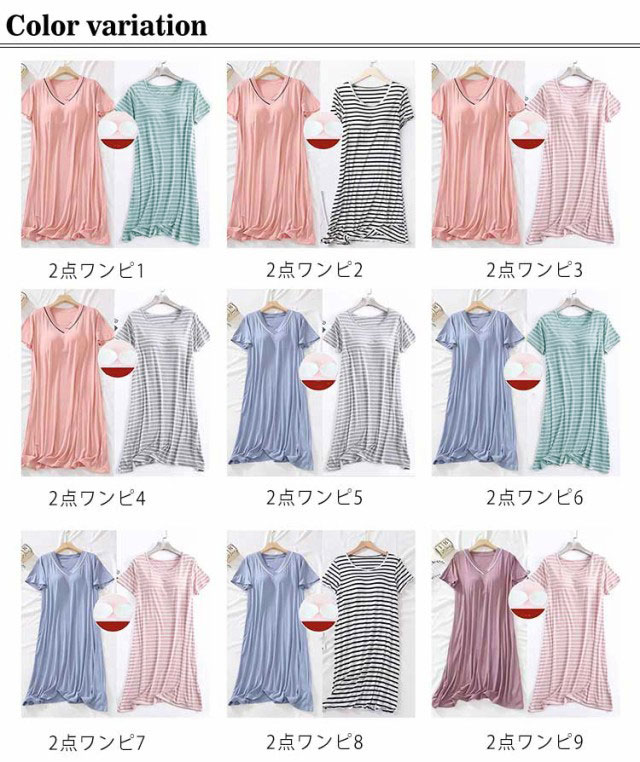 お得な2点セット!カップ付き ルームウェア ワンピース 半袖 パジャマ ネグリジェ Vネック 部屋着 寝間着 寝巻 かわいい 大人 可愛い ナイトウェア 春 夏 大きいサイズ M L XL 2XL 3XL 4XL 5XL 6XL