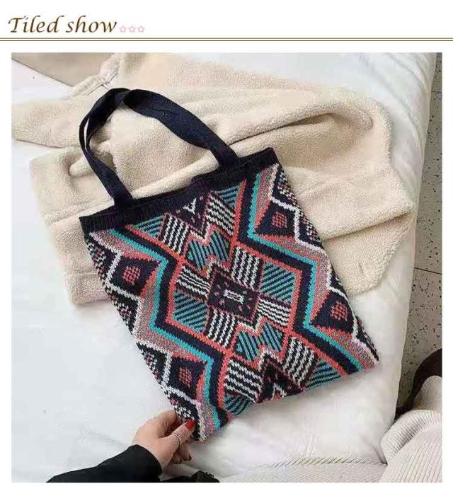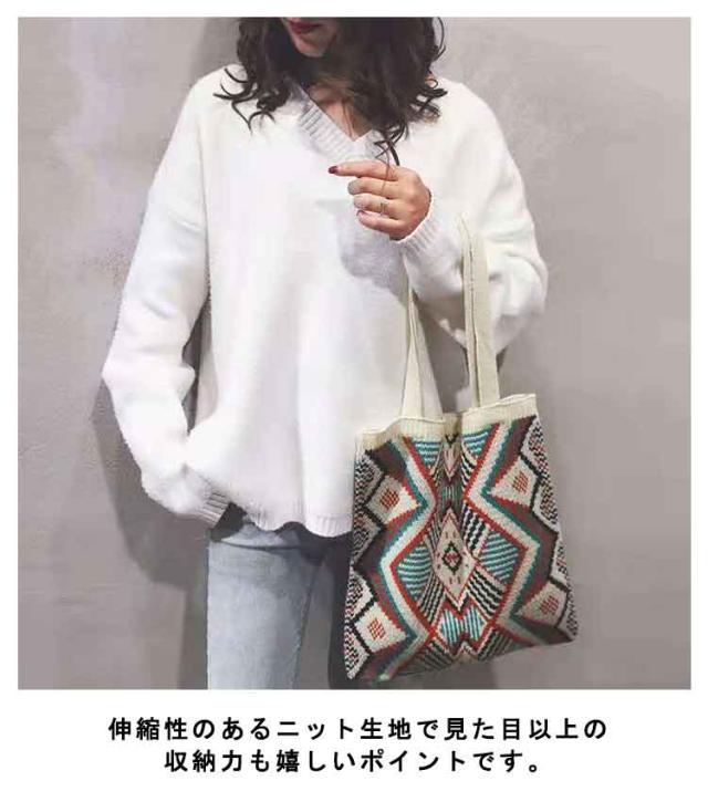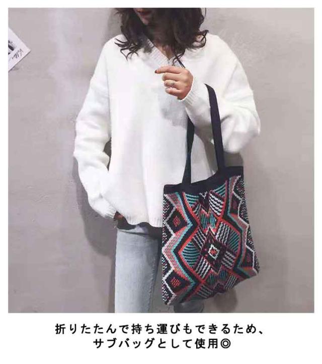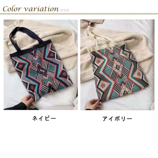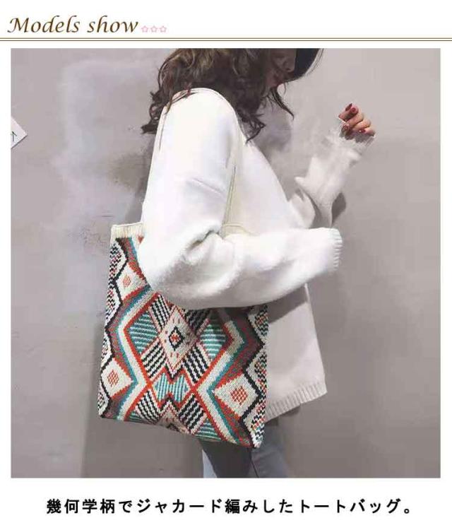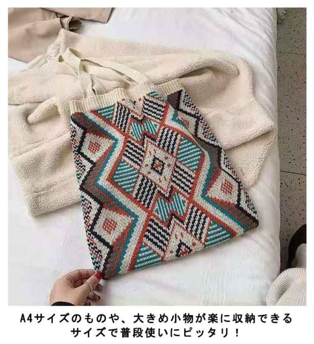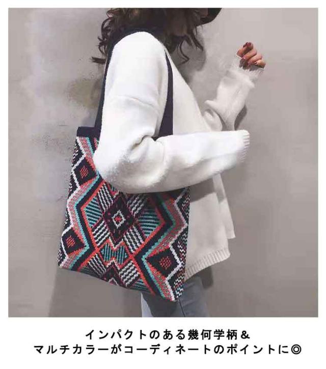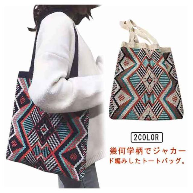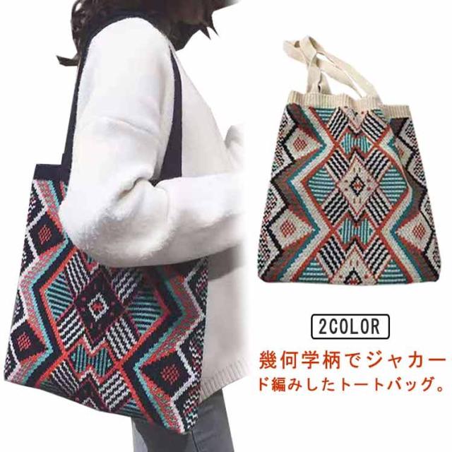 ニットバッグ ジャガード 幾何学柄 ニット トートバッグ A4 大きめ 肩掛け ニットトート エコバッグ 大容量 軽い 軽量 レディース 秋 冬 バッグ カジュアル 可愛い おしゃれ マルチ柄 カラフル マルチカラー ネイティブ柄 かわいい 【送料無料】