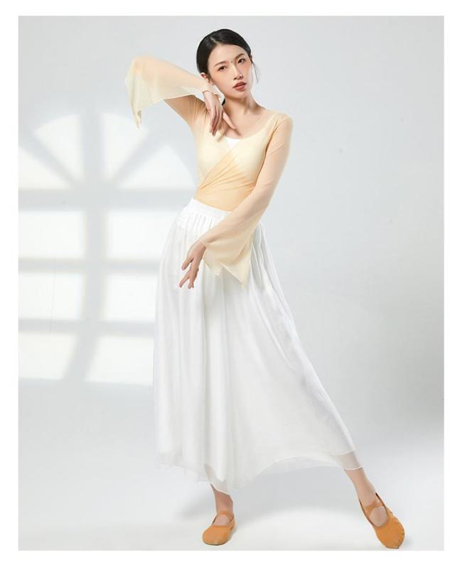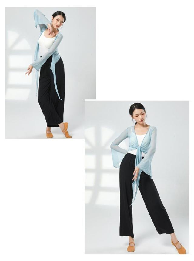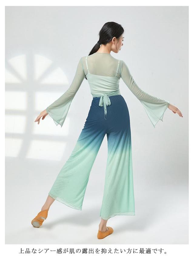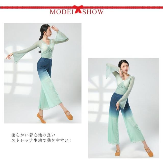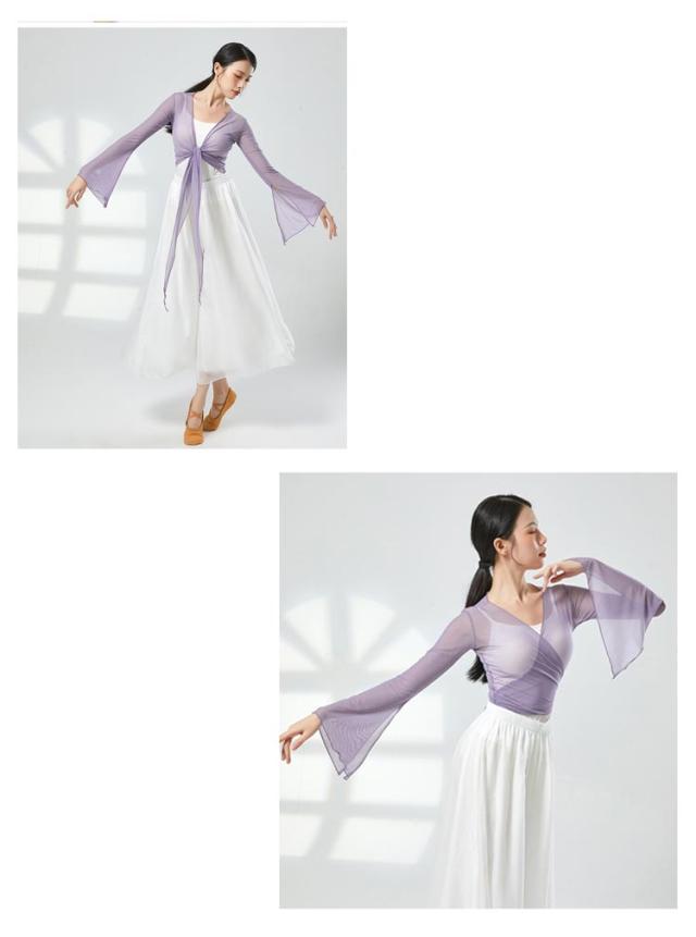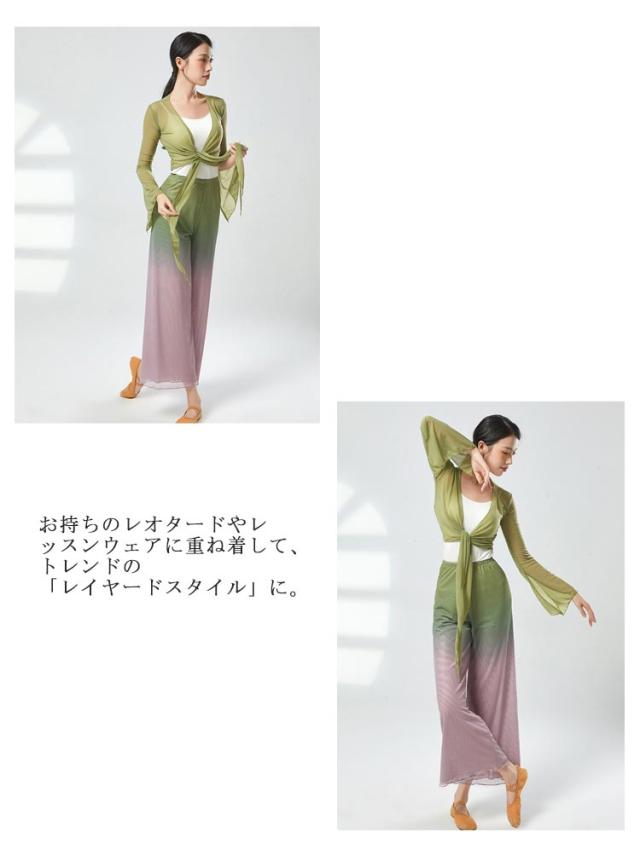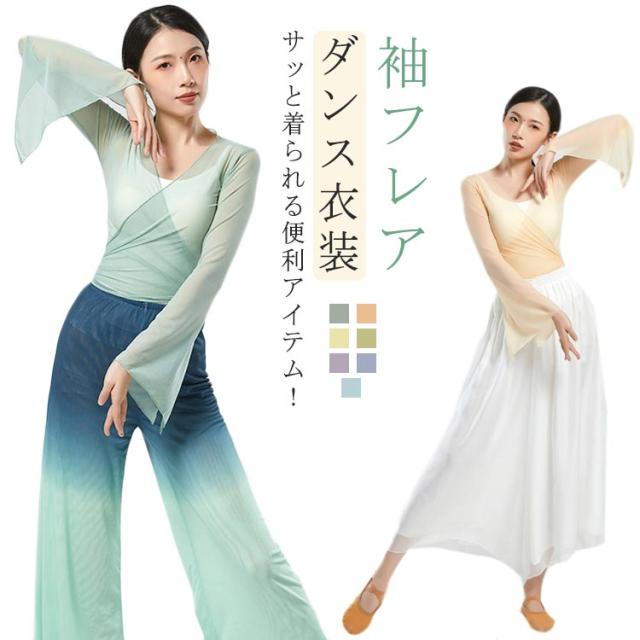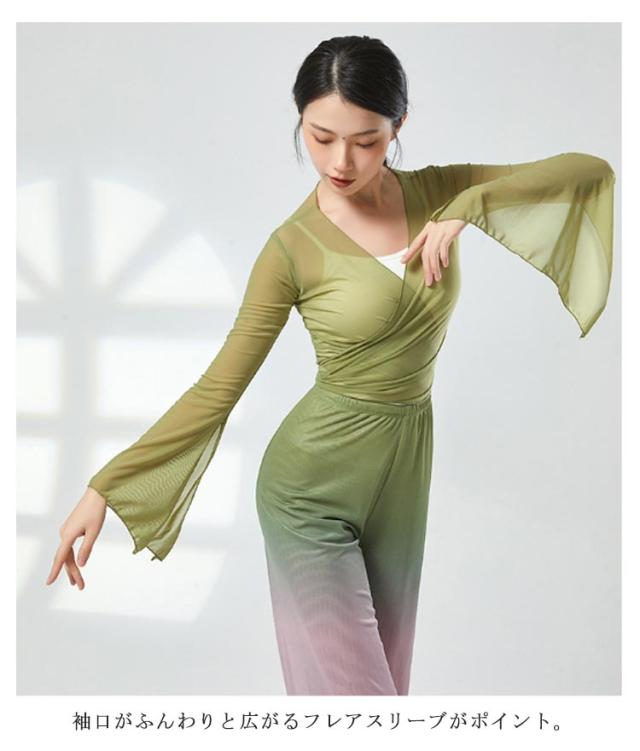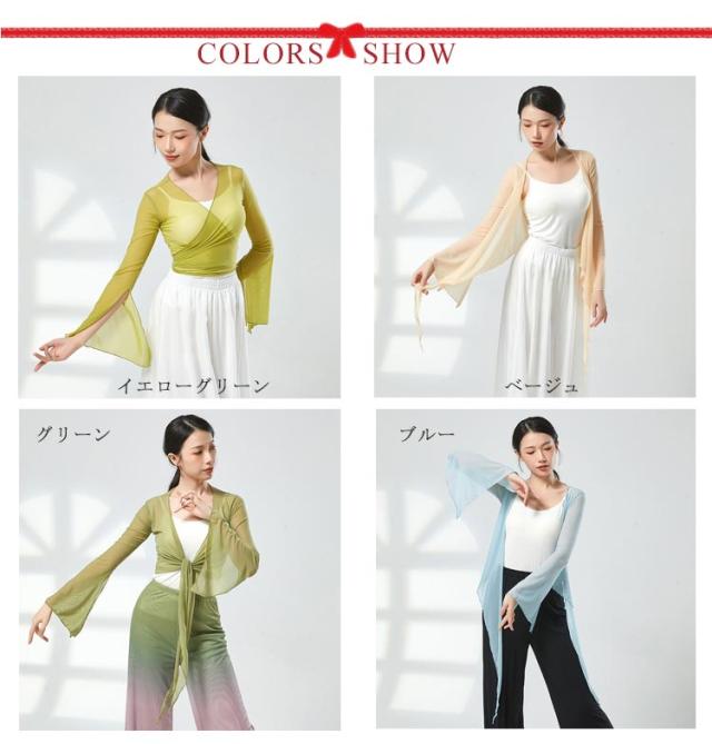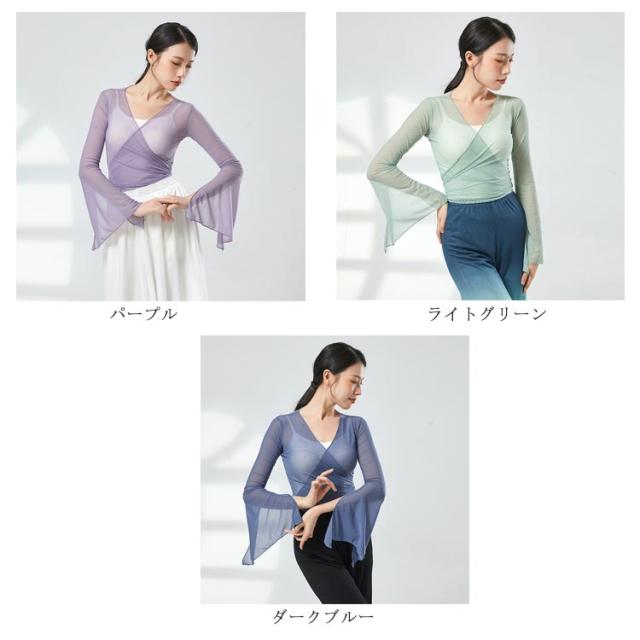 ダンスウェア メッシュ トップス シースルー シアー バレエ ベリーダンス 練習着 社交ダンス ダンス衣装 長袖 袖フレア ストレッチ レッスンウェア レディース 羽織
