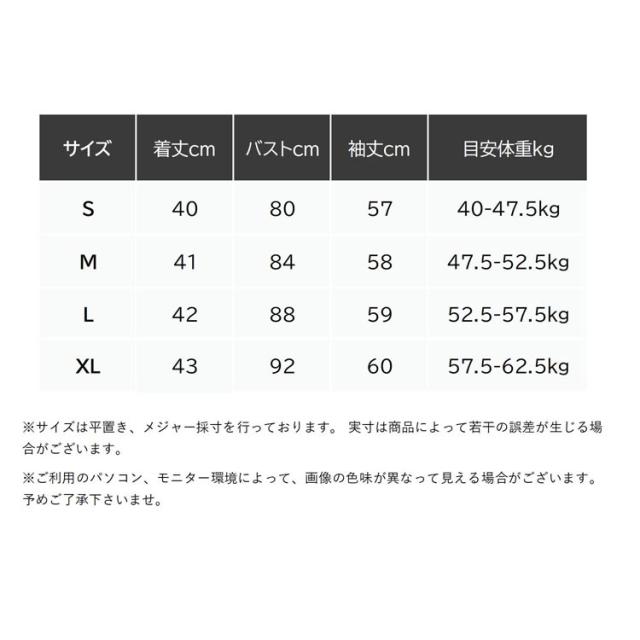 | サイズについての説明 | 【サイズ】画像を参照お願い致します。 ※上記サイズは平置き実寸になります。 サイズ表の実寸法は商品によって1-3cm程度の誤差がある場合がございます。 モデル:身長170cm 体重49kg/着用サイズ【M】 |