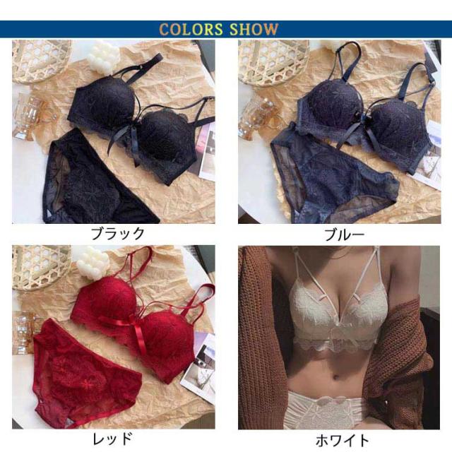 ダブルストライプセット フラワー ブラ&ショーツ上下セット ノンワイヤー ランジェリー 下着 送料無料